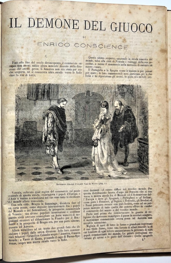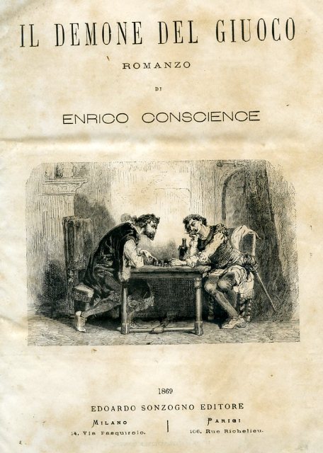 Il demone del giuco. Romanzo. Milano, Edoardo Sonzogno, 1869. 66 p. (30 x 22) [met 17 illustraties van Henry Duff Linton, uit Les bons romans (1868)] (foto links))