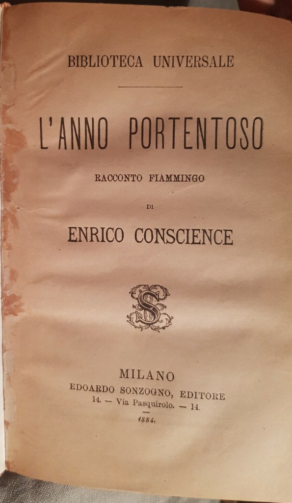 L’anno portentoso: racconto fiammingo Milano, Edoardo Sonzogno, 1884. 119 p. [nr. 88 van de Biblioteca universale ; jg. 84 #1] (16,5 x 11,5)