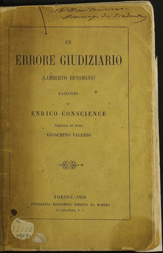 (Online: exemplaar opgedragen door de vertaler aan Conscience. https://www.google.be/books/edition/Un_errore_giudiziario/VZvDFCEf_lIC)