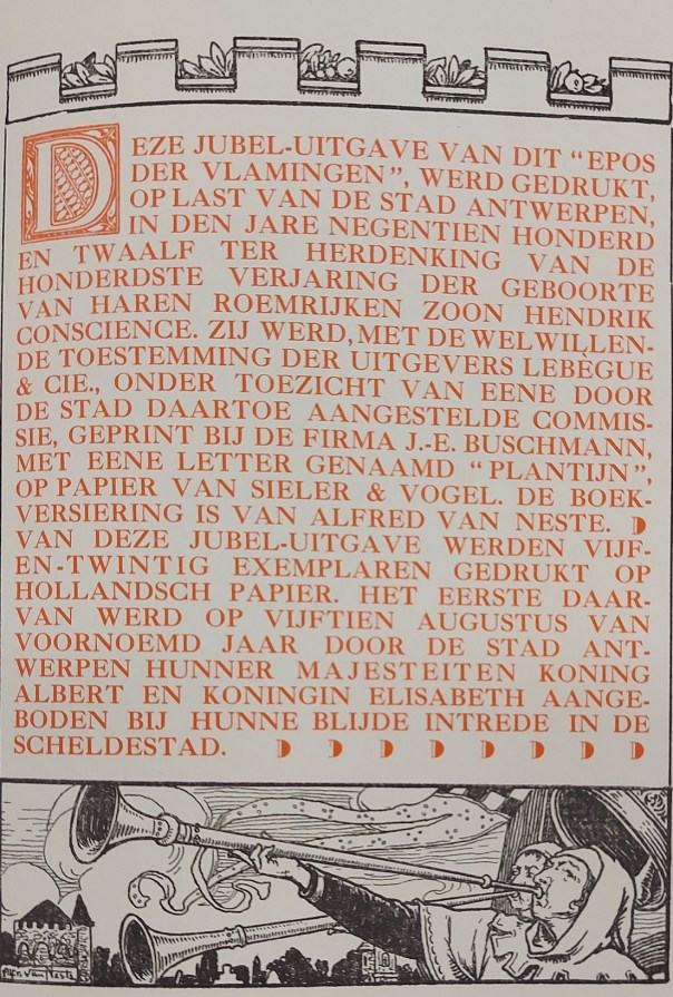In het colofon op p. [330] staat: ‘De tekst van deze uitgave werd volgens den eersten druk van 1838 onder toezicht van Eug. De Bock bezorgd door Dra. Nellie Daman met de bedoeling een correcten Nederlandschen tekst te leveren met volledige eerbiediging van den stijl van Conscience.’