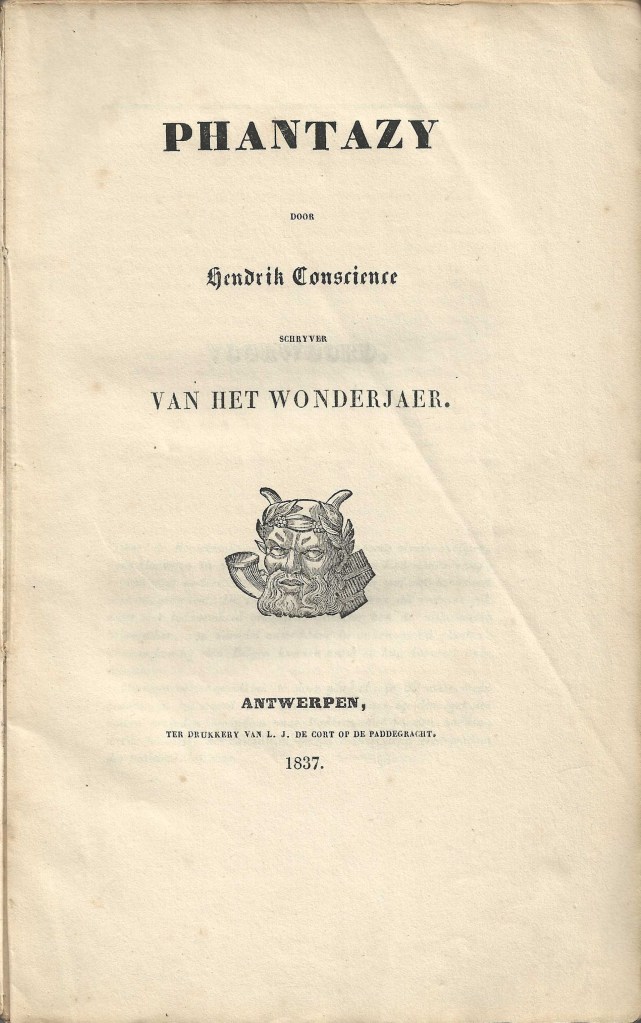 Phantazy door Hendrik Conscience, schryver van Het Wonderjaer. Antwerpen, Ter drukkery van L.J. de Cort op de Paddegracht, 1837. iv + 195 p. (24,3 × 15,3)