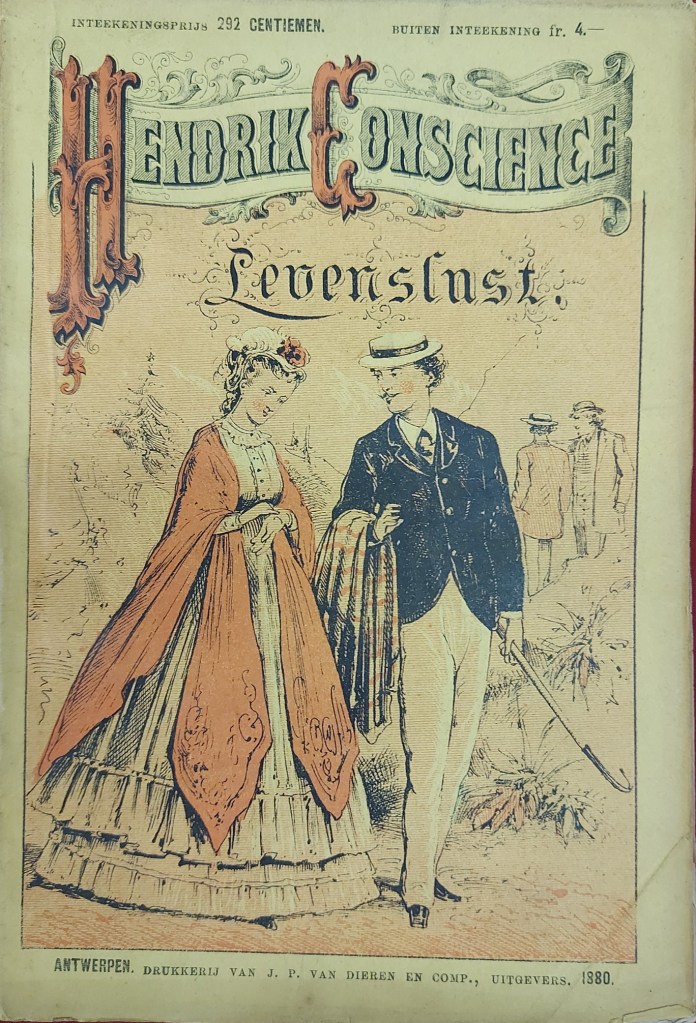 [Nederlandse variant: Witte uitgeversband met een art nouveau tekening in zwart en de naam Conscience in het rood, en op de rug Van Holkema & Warendorf. Op het titelblad: Brussel, J. Lebègue en Cie, Boekhandelaars-Uitgevers, Magdalenastraat 46, s.a. Met Lebègue monogram]