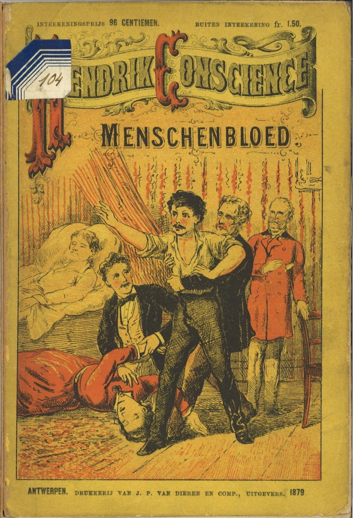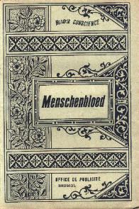 1884: Menschenbloed, in: Volledige Werken van Hendrik Conscience. Brussel, A.-N. Lebègue & Co., 1884 – 1886. Deel 2, Afl. XXVI, 42 p. (Oplage: 10.000 ex.)