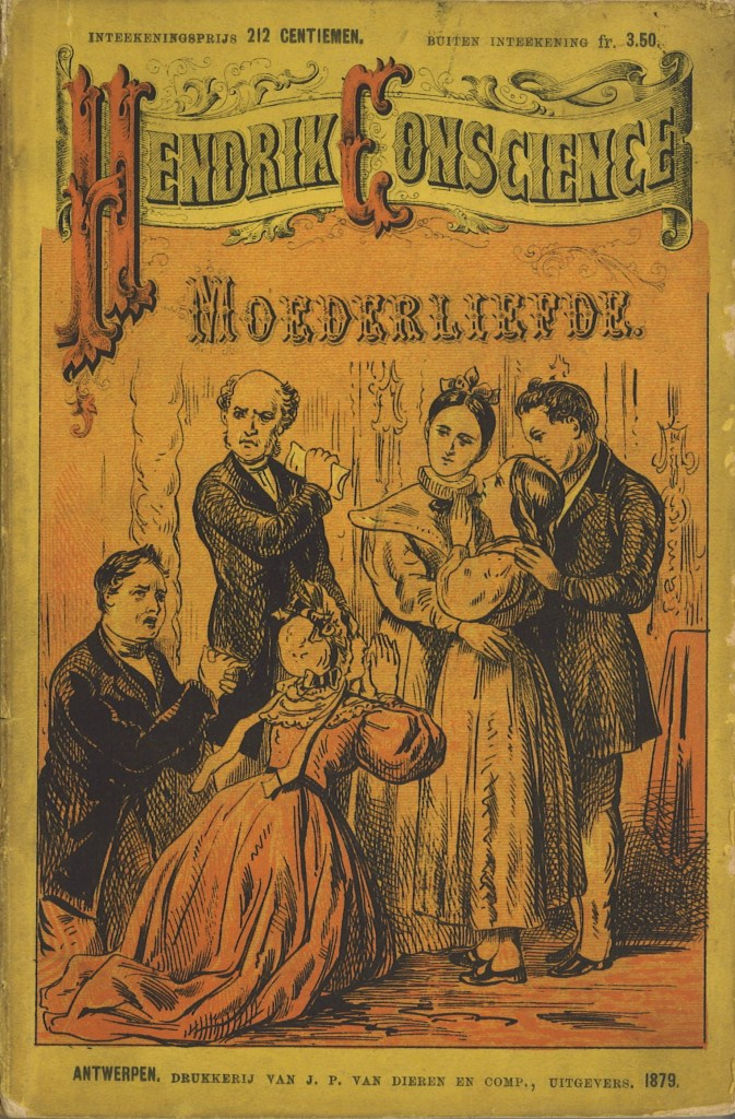 1884: Moederliefde, in: Volledige Werken van Hendrik Conscience. Brussel, A.-N. Lebègue & Co., 1884 – 1886. Deel 1, Afl. XI, 97 p. (Oplage: 10.000 ex.)